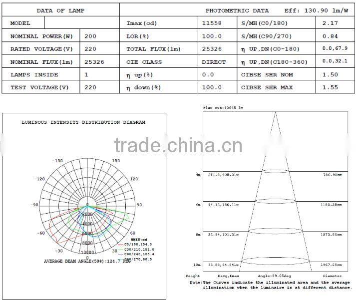 Technical data sheet for shoe box light