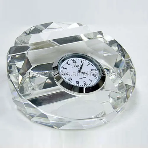 Multifuntional Crystal Clock Crystal Name Card Holder Paperweight Table Clock Round