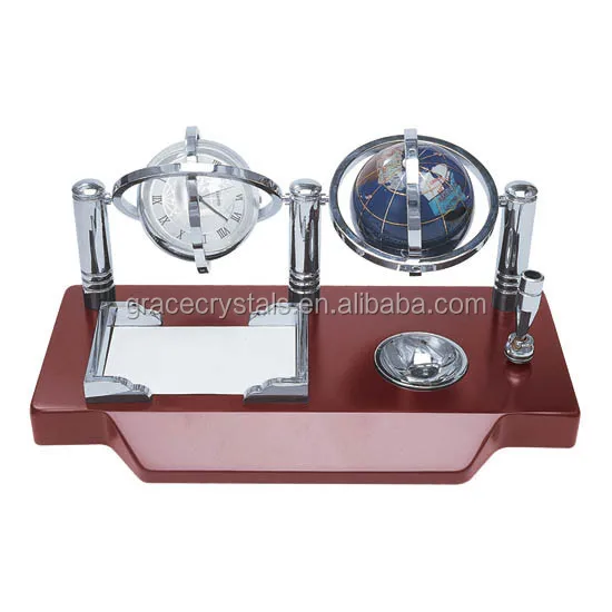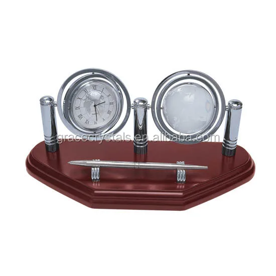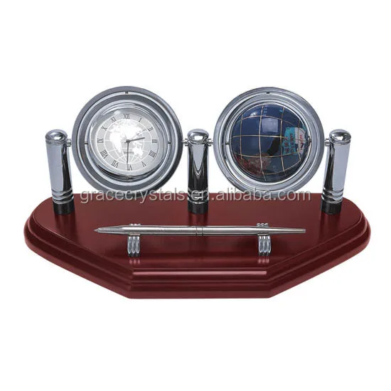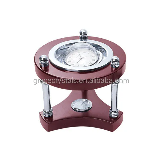 Lasest Corporate Gifts Crystal Globe Clock With Wood Stand Wooden Corporate Gifts