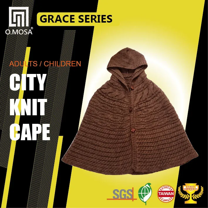 OM3248 3G Hooded CAPE Cloak Style Alpaca Cross Cable City Knit Poncho
