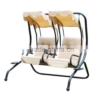 Double Swing Chairs With Frame / Canopy / Cupholder, Tan