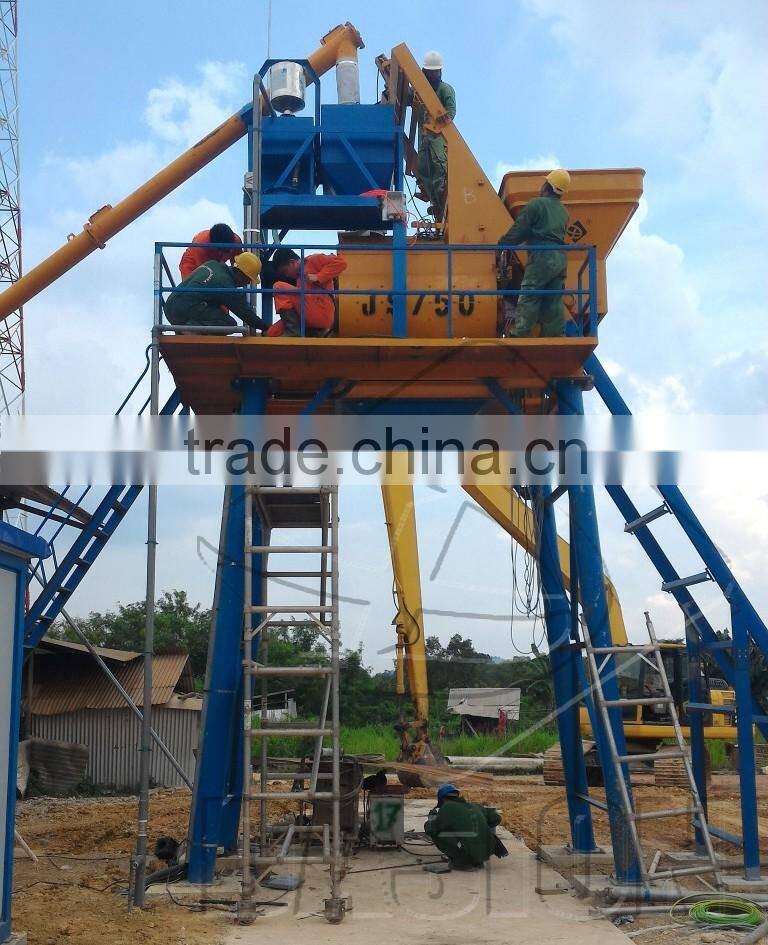 Adopt JS series Twin-shaft Concrete Mixer for high quality of mixing effect. Assemble ladder, sidewalk and handrail, easily for worker maintenance.