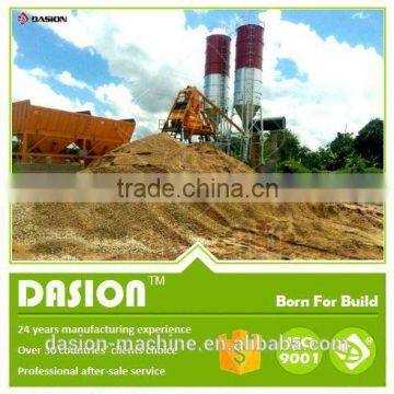 DASION Bucket type of concrete mixing plant consists of material batching, mixing and electric control system, etc, which is professional equipment for ready mix concrete production, such as plasticity/dry concrete. DASION concrete mixing plant is widely used in small and medium construction products, road, bridge project, and concrete prefabrication factory.
