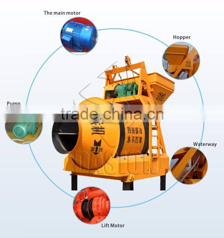 3. JZM series concrete mixers are portable concrete mixers with 2 tyres, except JZM750 is fixed concrete mixer.