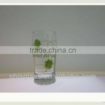 1.Description:drinking glass2.Technics: Sandblast+silk screen print