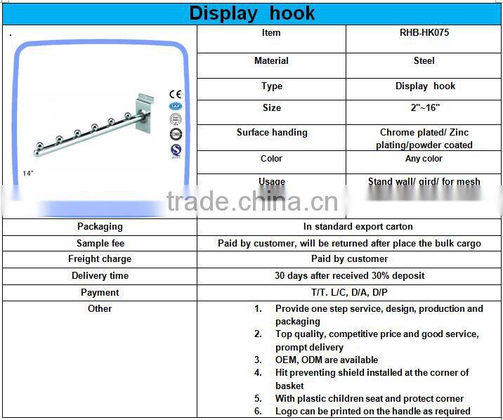 u Shape Display Hook for Slatwall,slat Wall Euro HookUS$ 0.16 - 0.3MOQ: 3000 Pieces