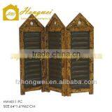 Hongwei 3-Panels Folding Antique Brown Wooden Room Screens/Room Divider for Home Decor
