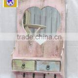 Hongwei 2015 New Design Hooks Distressed Antique Wooden Wall Shelf With Mirror and Drawer for Home Decor.HW15A0038&HW15A0039