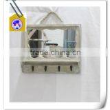 2015 New Design Hooks Distressed Antique Wooden Wall Shelf With Mirror for Home Decor.HW15A0042&HW15A0043