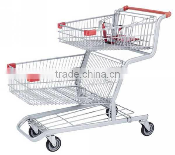 Supermarket metal 2 layer hand push cart