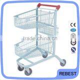 New Arrival Metal Shopping Trolley With Two Plastic Basket