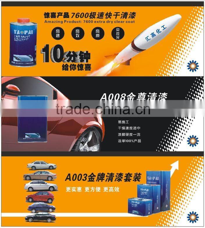 The refinish series of double layers or three layers include light color, silver, pearl color base, the metallic effect is obvious, quick drying, easy to construct.