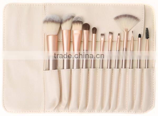 12pcs Champagne Wood Handle Makeup Brush Set With Kit