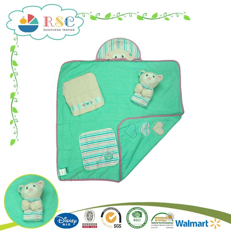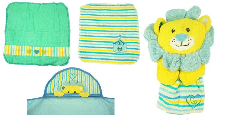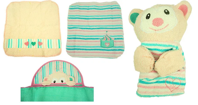4PCS/SET including: hooded towel*1; square towel*2; baby toy*1