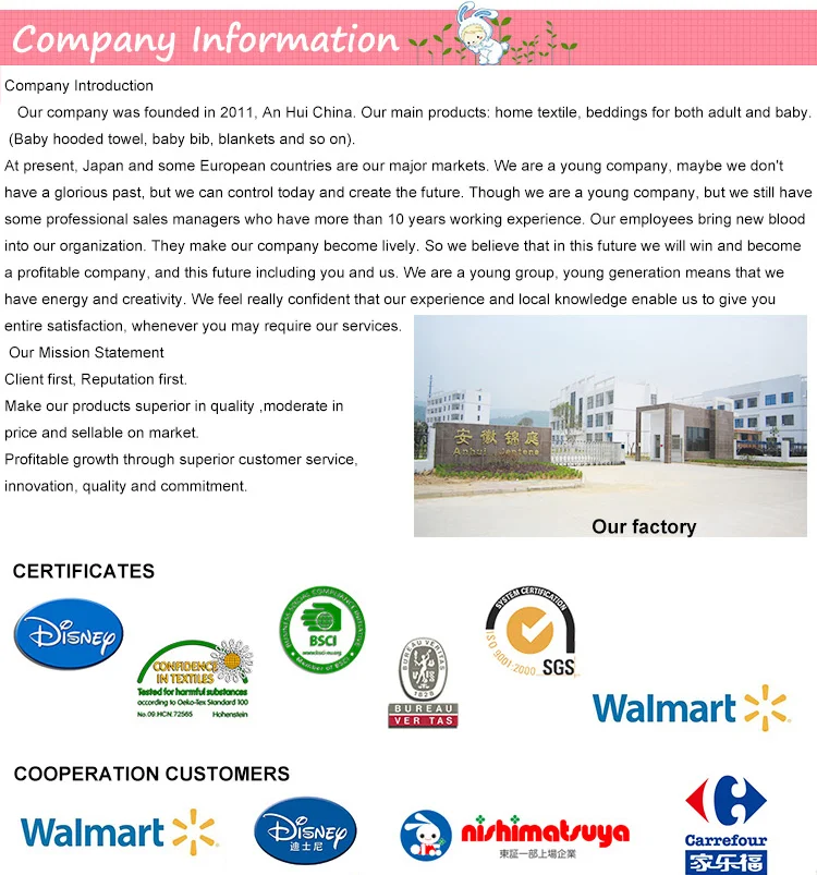 3.100% cotton fabric makes our product eco-friendly, healthy and soft touch.