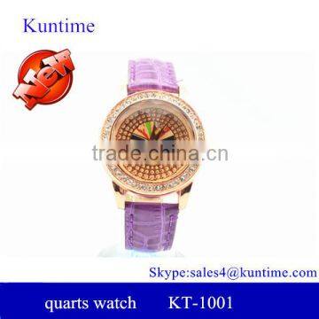 Cheap elegant fashion watch with 4 laps crystal decoration bezel quarts wrist watch