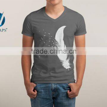 100% Thin Soft Combed Cotton Vintage Casual v Neck Tshirt for Men Wholesale