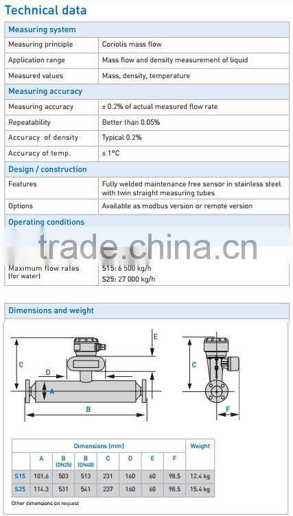 Innovative twin measuring tubes Easily drained and easy to clean Resistant to installation and process effects Long working life. Optimised flow divider for minimum pressure loss. High levels of accuracy means an excellent price / performance ratio. Modular electronics with data redundancy - "plug & play" replacement of electronics