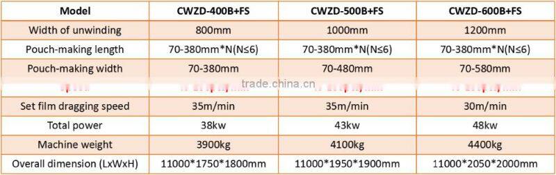 CW-400ZF High speed central sealing and four side sealing bag making machine