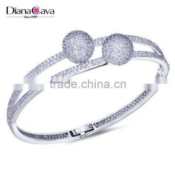 Alibaba Express Wholesale Double Ball Pave Setting CZ Fashion Bangle for Women