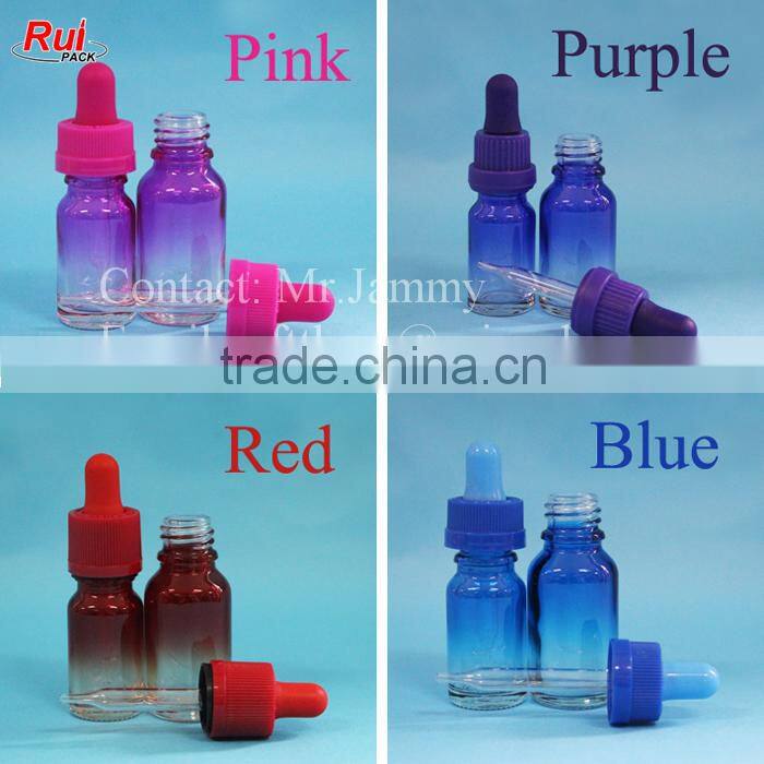 Gradient blue color glass essential oil bottle with dropper, coating color glass bottle