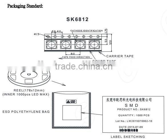 Dongguan led smd5050 rgb sk6812 3 chips smd led
