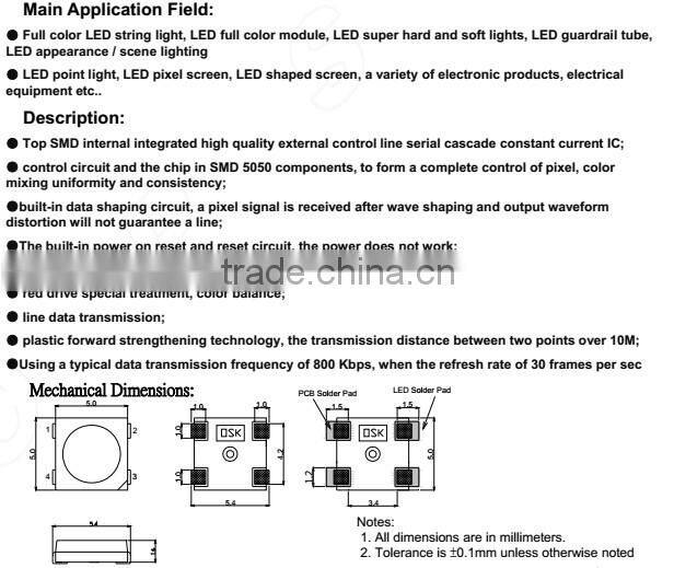 High quality smd 5050 digital rgbw sk6812 led chip