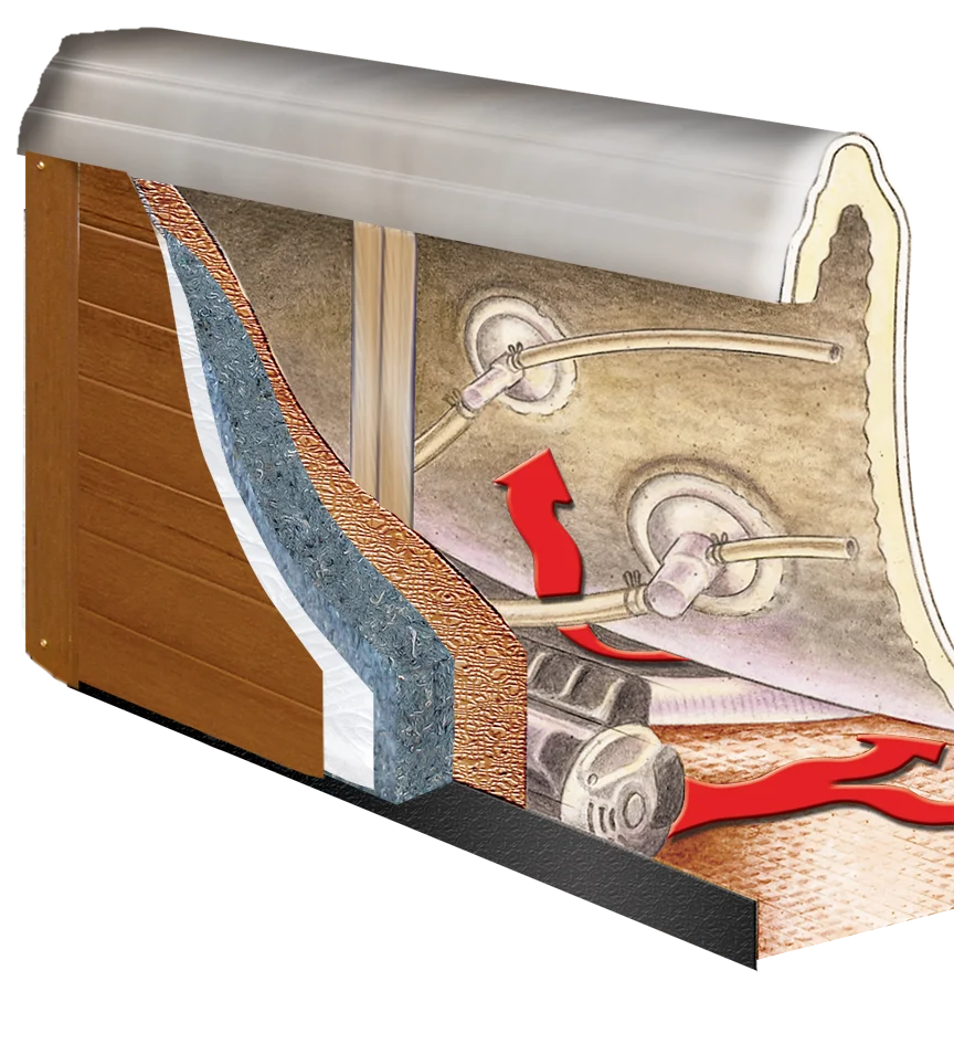 Effective insulation is extremely important for spa in order to reduce running costs to a minimum. The triple “Reflective Thermal Barrier” (RTB ) insulation of ZEN SPAS utilizes thermal gains from the spa’s equipment, collecting any waste heat energy and reflecting it back into the plumbing and shell, whilst keeping out the colder outer air.