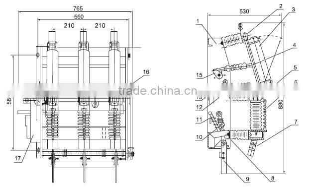 12kv FZN21 indoor AC hv vacuum load break switch with fuse combination
