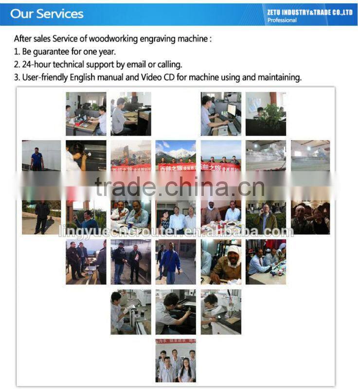 1.How long does it take to machine a square meters relief? Engraving machine working efficiency and the complexity of the design, processing depth, material processing and ease. So bad time estimates, carved in our company sample page with related practical sampling data for your reference. 2. If the machine problems, how do you provide service? First of all, we will immediately begin to give you solve the problem, if need to staff in the past to help solve, our stone carving machine after-sales staff will arrive within 3 working days (according to the distance). 3.How could I know if this machine is suitable for me? Before ordering, we will provided every details of the machine for your reference, or you could tell us your work piece, our technician will recommend the most suitable machine for you. Furthermore, we can make a sample in advance for you to check if your drawing is provided. 4.how do you do what stone carving tools, how to get enough. CNC engraving need cutting tools, we generally do not directly provide, we will call you from A partner, ordering tool directly by you. We try not to do, in order to reduce misunderstanding 5.If the machine has problems, what can you do to help? | |