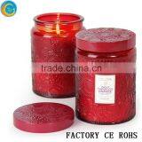 Online/Red Glass Candle Jar With Lids /Glass Candelabra/Glass Comtainer For Home Decor