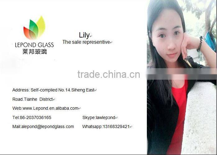 Guangzhou Lepond Glass Co.,Ltd is a company specialized in deep-processing glass and glass wholesale of various glass products. It locates in one of the most active economical area in Guangzhou, Guangdong Province. Our company is a well-equipped one and owns a number of years' experienced high-quality staff who engaged in glass technology R&D. With the newly developed products at home and abroad, we aim to provide products and services of good quality products, to deliver punctually and to fully make our customers satisfied. Because of our abundant financial resources, good quality equipments, advanced technology and the ability of strong innovation, our products has passed 3C (China Compulsory Certification) national certification as well as ISO9001:2000 quality system certification.