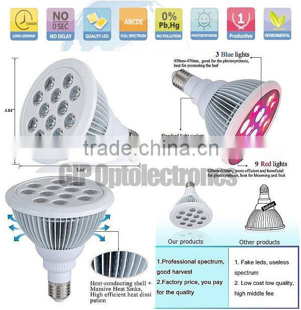 2016 New 12W E27 Par38 Red Blue LED Grow Light Bulb LED Plant Grow Light, E27 12w Indoor Garden Hydroponic Plant Grow Led Light