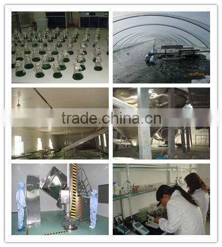 Spirulina is found in humans so far the best all-natural protein food source, and is the protein content as high as 60 ~ 70%, and the absorption rate of over 95%. Its unique phycocyanin to enhance the fish immune system, so the fish of gastrointestinal diseases and liver disease prevention and treatment of special significance. Which is extremely rich in vitamins and mineral content, including vitamin B1, vitamin B2, vitamin B6, vitamin B12, vitamin E, vitamin K, etc., and zinc, iron, potassium, calcium, magnesium, phosphorus, selenium, iodine and other trace elements, its biological zinc, iron ratio is reasonable, most easily absorbed by fish and shrimp, fish can rapidly improve anorexia, increased appetite. Its carotenoid content of carrots, 15 times the vitamin B12 content of liver of the four times the iron content of spinach, 23 times the iron content is the most abundant food, therefore, Spirulina positive significance for prevention and treatment of anemia. Spirulina contains a large number of γ-linolenic acid is an unsaturated fatty acid. Spirulina polysaccharide with anti-radiation damage and improve the radiotherapy and chemotherapy-induced side effects. Spirulina is extremely rich in chlorophyll content is a common vegetable content of more than 10 times. The promotion of fish digestion, the blood and toxins and improve allergies, eliminating visceral inflammation has a positive effect.