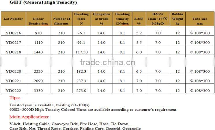 FDY colourful General high tenacity filament 100% polyester yarn are widely used in automobile and aircraft safety belt, lifting belt, nets, fastening belt, special industrial cloth, and cable and outdoor sports, such as equipment.