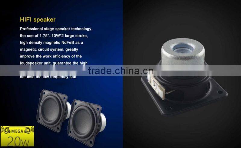 Function:Bluetooth input/FM /Aux input/USB/TF card. Support TF card (Max.32GB),With AUX-IN function,NdFeB Speaker inside,HI-FI sound quality,super long time to play,Hands-free call