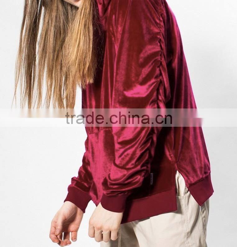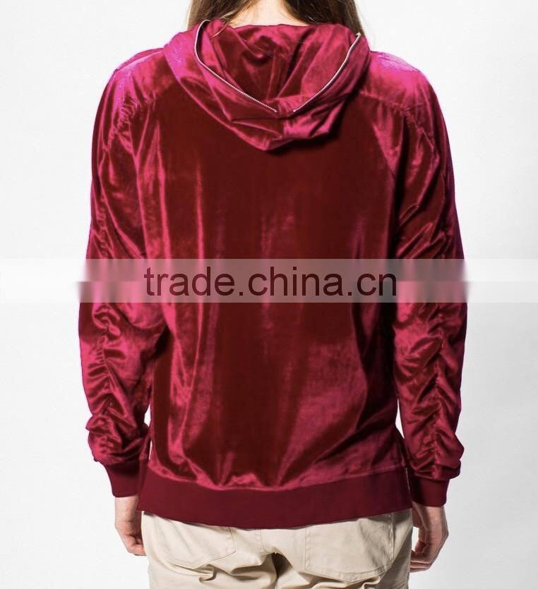 2016 Maroon Velvet Ruffle Hoodie for Men Gathered Sleeve