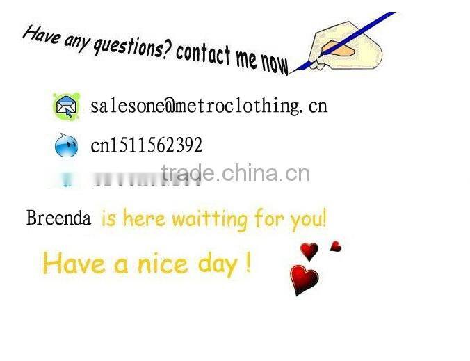 1.We are a clothing manufacturer who have many highly skilled sewing workers & professional design term & strict QC systerm, .can guarantee to offer you HIGH quality clothes with attractive styles.