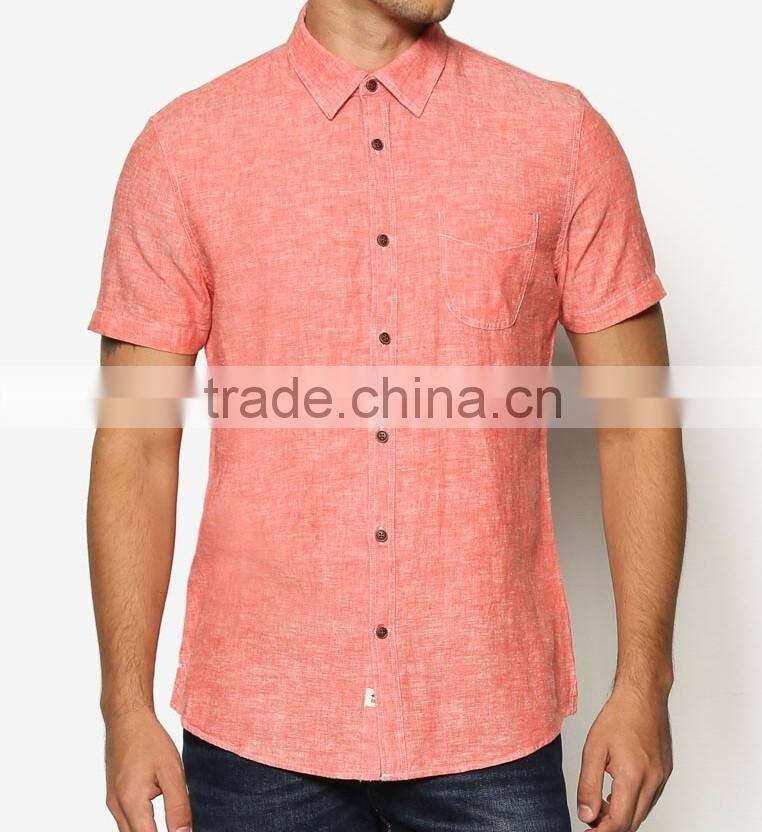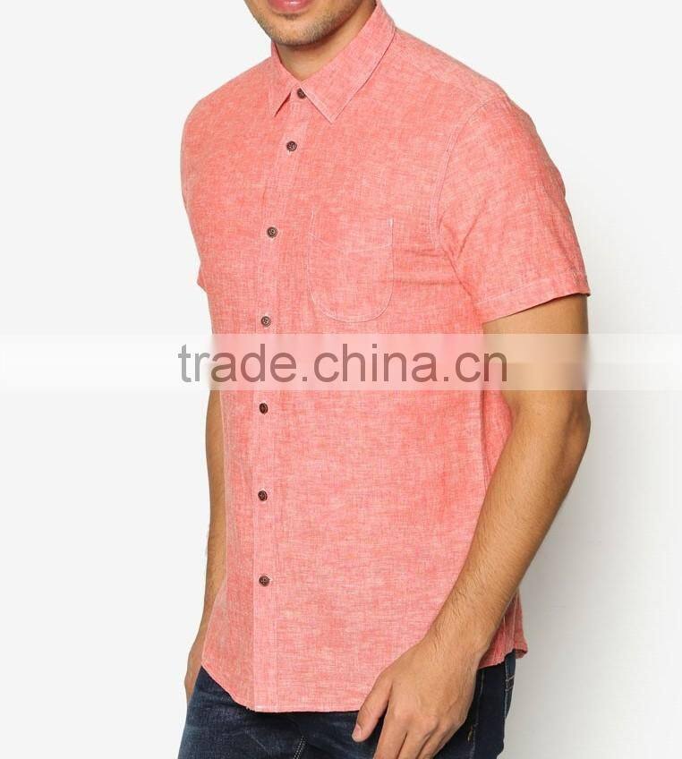 Coral Linen Textured Men's Shirts Summer Cool Button Up Shirts Quality Choice