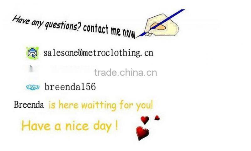 1.We are a clothing manufacturer who have many highly skilled sewing workers & professional design term & strict QC systerm, .can guarantee to offer you HIGH quality clothes with attractive styles.