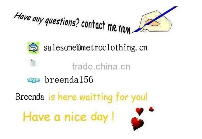1.We are a clothing manufacturer who have many highly skilled sewing workers & professional design term & strict QC systerm, .can guarantee to offer you HIGH quality clothes with attractive styles.