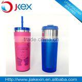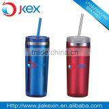 2015 New Product 16oz Double Wall Stainless Steel Straw Tumbler, Noverty Style Straw Travel Mug
