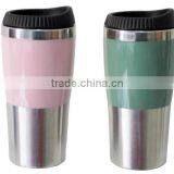 Colorful Popular Travel Mug Inter Stainless Steel Outer Platic With PP Lid, Easy to Open