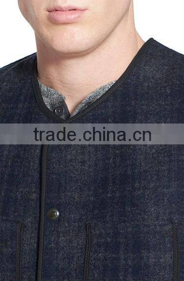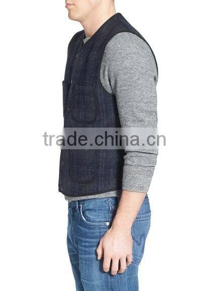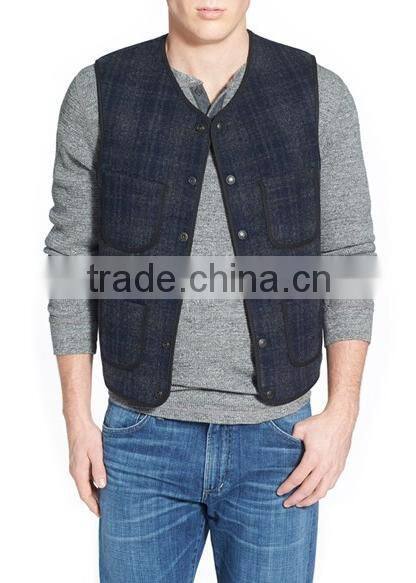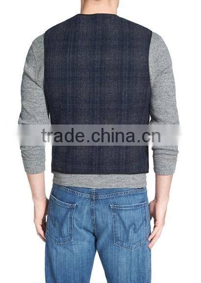 2016 New Design Custom Made Fashion Navy And Grey Vest n Quilted Suede Vest
