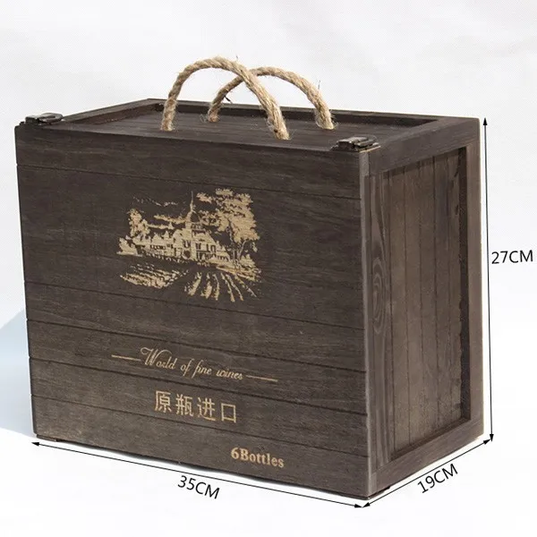 Europe Six Bottles Wood Gift Packing Wooden Wine Box for Sale