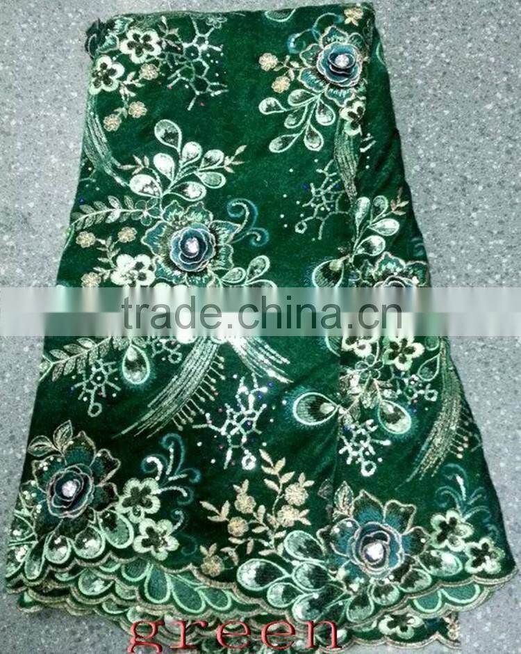T236-3 Green High Quality 100% Korea Velvet African George Fabric From India