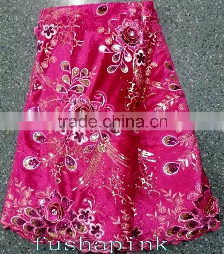 T238-1 Fushia High Quality 100% African Velvet Lace Fabric