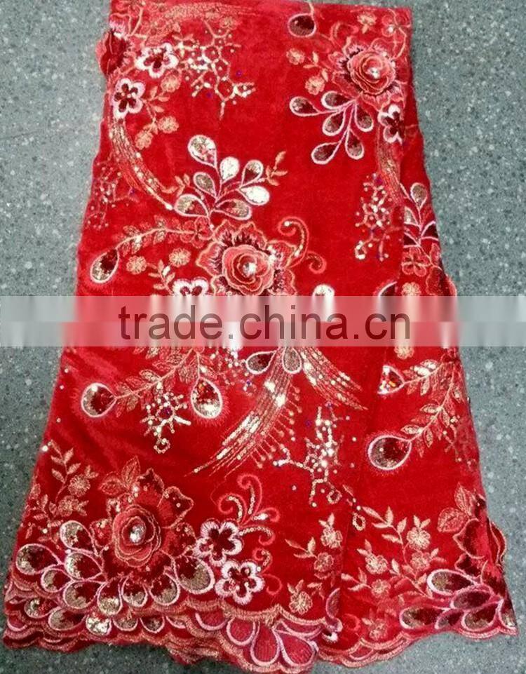 T235-1 Red High Quality 100% Korea Velvet Indian Lace Fabrics