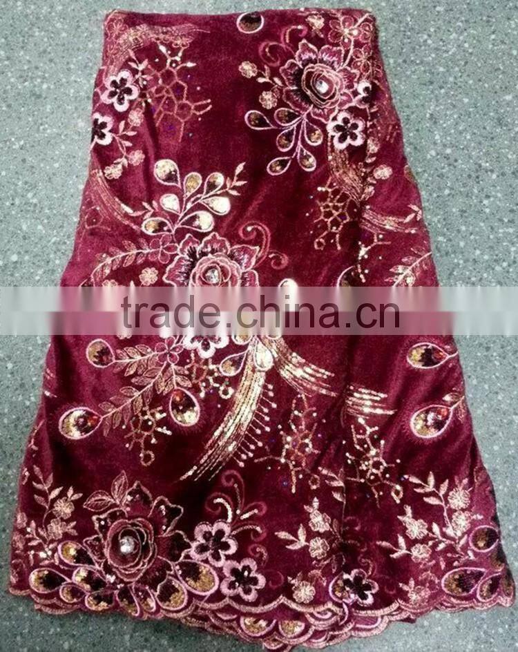 T236-2 Wine High Quality 100% Korea Velvet African George Lace Fabric