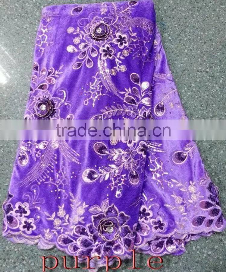 J219-3 Purple Color 100% Swiss Velvet Fabric for African Party